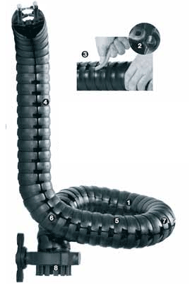 Triflex? R系統(tǒng)TRE.30系列 1. 可多維移動(dòng)——在復(fù)雜移動(dòng)中具有很高靈活性,甚至是在第6軸。 縱軸上每個(gè)鏈節(jié)可旋轉(zhuǎn)約± 10°。 這有助于引導(dǎo)電纜通過有難度的幾何結(jié)構(gòu) 2. 通過特別的“拖車設(shè)計(jì)”(=球窩系統(tǒng))吸收大量拉力,從而可在所有軸上平穩(wěn)運(yùn)轉(zhuǎn) 3. 簡單開放機(jī)制——易于填充和更換預(yù)裝配的電纜或介質(zhì)軟管 4. 卓越的機(jī)械特性 5. 小彎曲半徑和小節(jié)距——實(shí)現(xiàn)節(jié)省空間的安裝 6. 輕松安裝和拆除——一個(gè)壓鑄部件,因此安裝不費(fèi)力。 牽引方向不需要支承元件(如鋼纜、彈簧件等) 7. 超級(jí)穩(wěn)定——由于止動(dòng)器位于外側(cè),精準(zhǔn)止動(dòng)器用于半徑和扭轉(zhuǎn)運(yùn)動(dòng) 8. 由于很容易將機(jī)器/機(jī)器人與智能附件相連,所以配置時(shí)間可降至最低